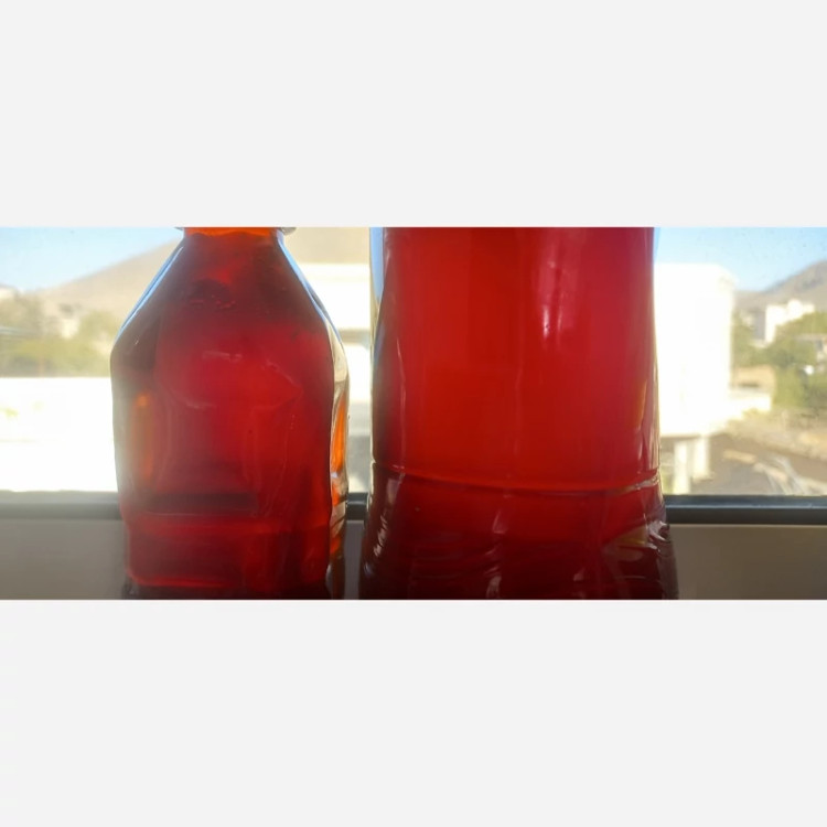 رنگ قرمز شفاف و کاملاً صاف بدون رسوب