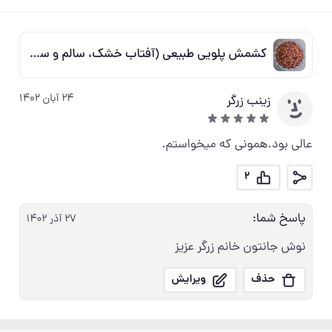 خرید کشمش پلویی آفتاب خشک طبیعی و مرغوب | بدون روغن و افزودنی