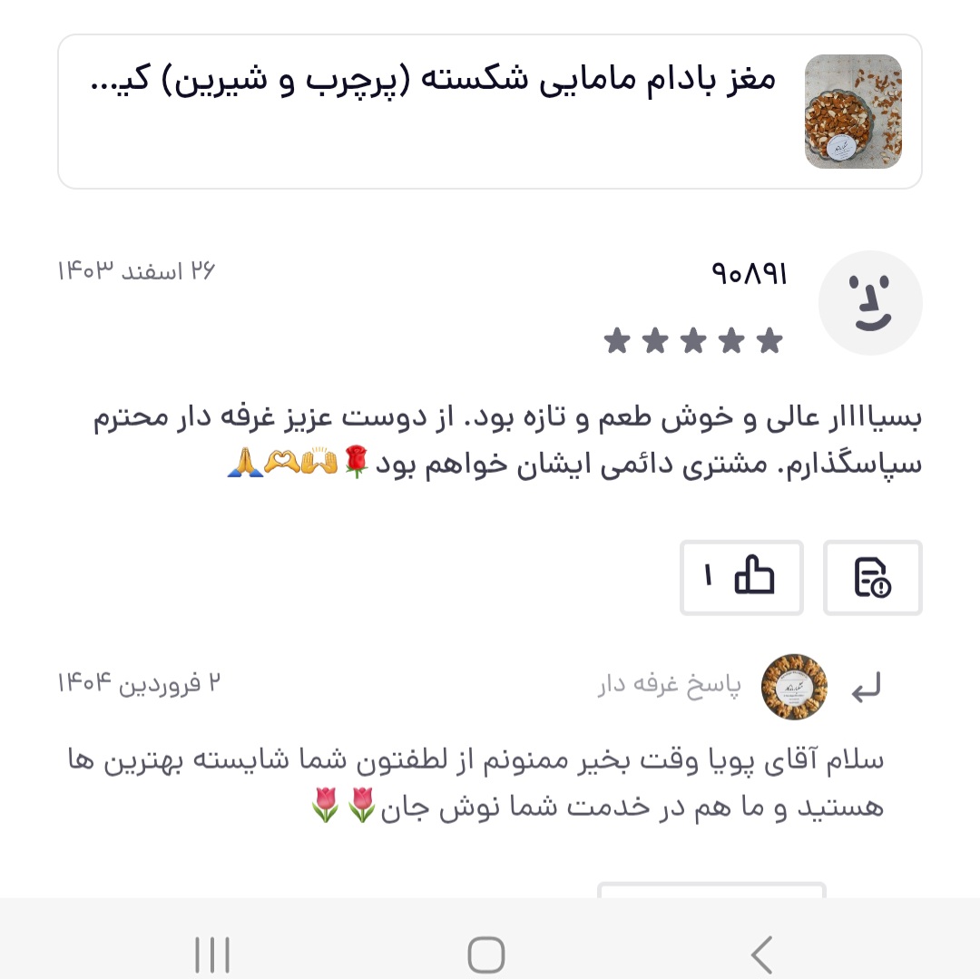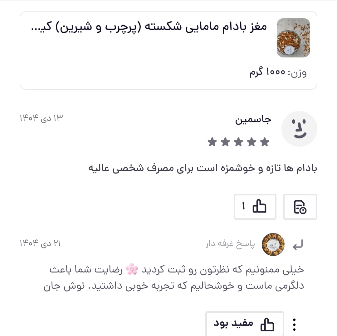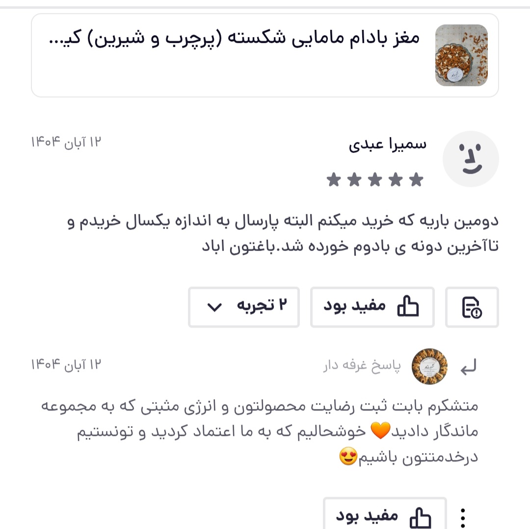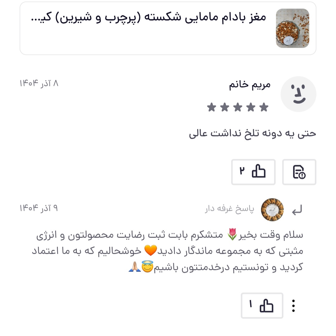 این بادام ایرانی با کیفیت ممتاز، گزینهای مطمئن برای کسانی است که به سلامت، طعم و تازگی مواد غذایی اهمیت میدهند.