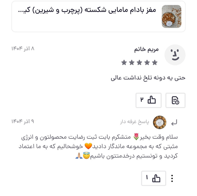 نام محصول: مغز بادام مامایی شکسته